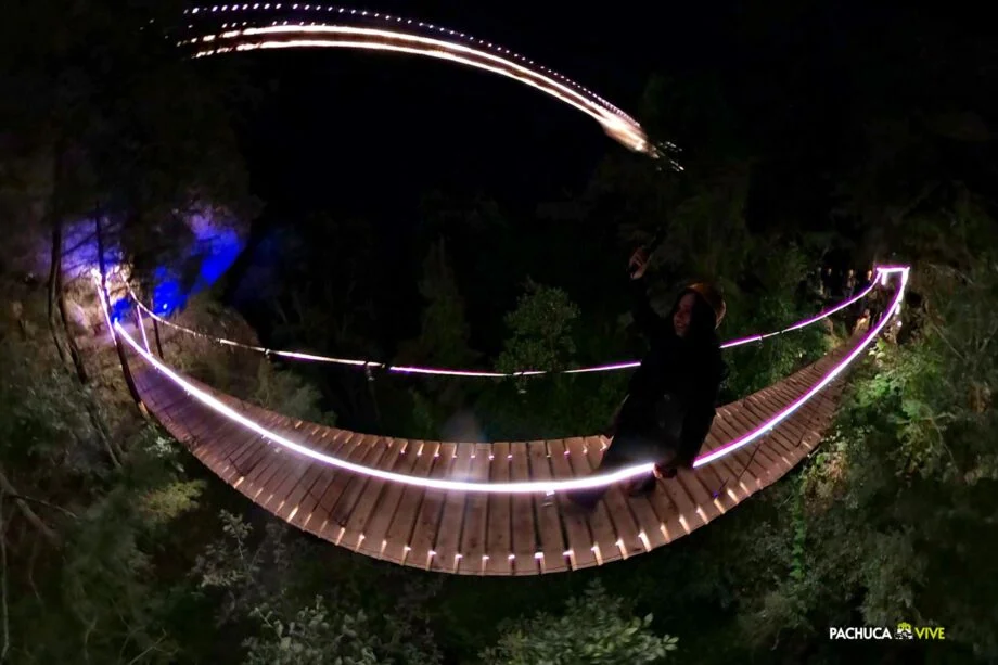 Ahora, sí vámonos a los Puentes Colgantes, este recorrido lo puedes hacer con la luz del día o en la noche. Son experiencias completamente, distintas, yo te recomiendo que vayas en la noche, ya que la obscuridad del bosque te permite disfrutarlo de una forma más mágica.